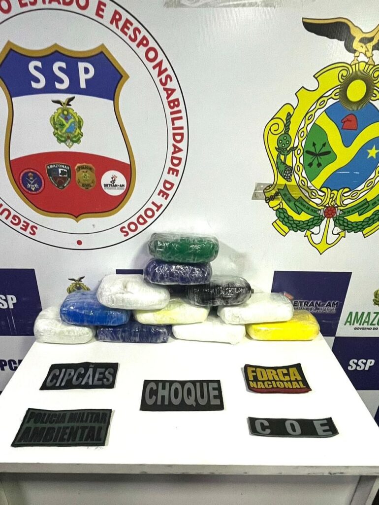 Durante abordagem à uma embarcação, na manhã deste sábado (01/06), policiais da Base Arpão 1 apreenderam 11 quilos de cocaína que estavam escondidas em uma mala. A ação, realizada no município de Coari (a 366 quilômetros de Manaus), faz parte do cumprimento da Operação Fronteira Mais Segura, coordenada pela Secretaria de Segurança Pública do Amazonas (SSP-AM).