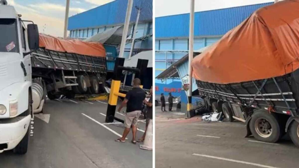 Imagens do local mostram o caminhão tombado sobre a pista e os veículos danificados ao redor. Testemunhas relataram momentos de pânico com o barulho da colisão e a movimentação repentina de curiosos e comerciantes próximos à área do acidente.