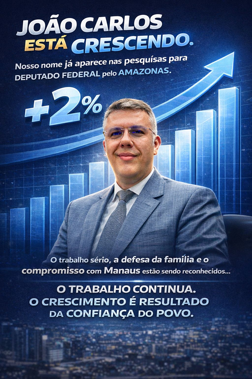 A presença do nome de João Carlos no levantamento indica que o vereador começa a ser lembrado pelo eleitorado amazonense no cenário da disputa para a Câmara Federal. Atualmente exercendo mandato na Câmara Municipal de Manaus, João Carlos tem atuação voltada a pautas sociais, educacionais e iniciativas voltadas ao fortalecimento da família e à geração de oportunidades para a população.