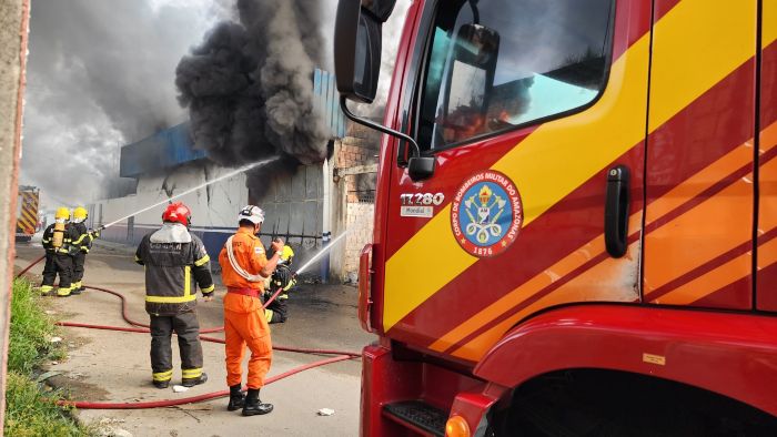Corpo de Bombeiros combate incêndio em galpão de fábrica na zona norte de Manaus