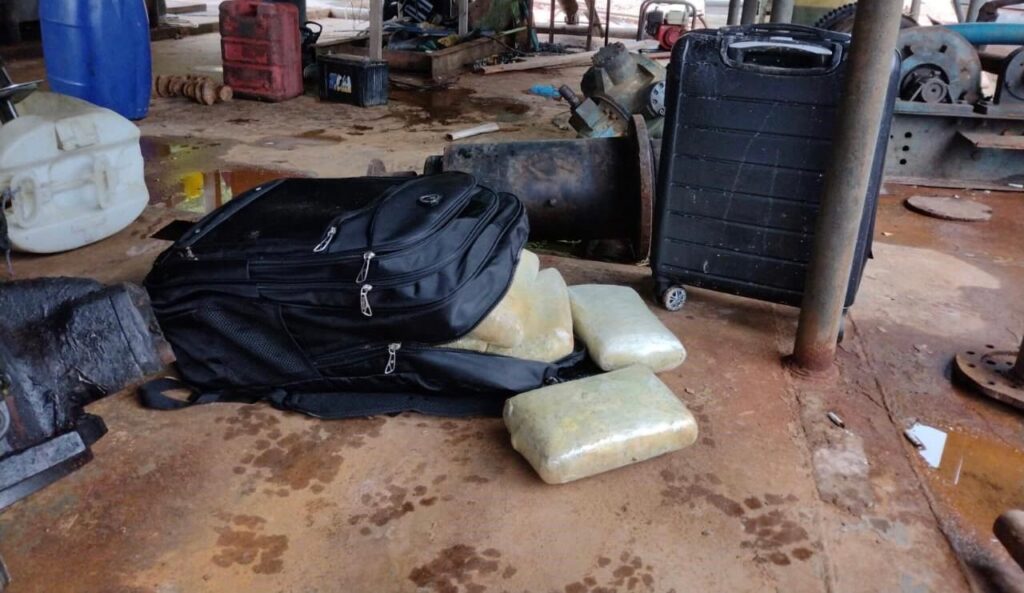 Durante as buscas, foram encontrados nos cômodos do flutuante, dentro de uma mala e uma mochila 12 tabletes de droga do tipo skank e três tabletes de pasta-base de cocaína. Além do entorpecente foram apreendidos, ainda, quatro celulares, tvs, antenas para internet, R$350 em espécie e 104.000,00 mil pesos colombianos. Com a apreensão, a polícia calcula dano de R$624 mil ao crime.