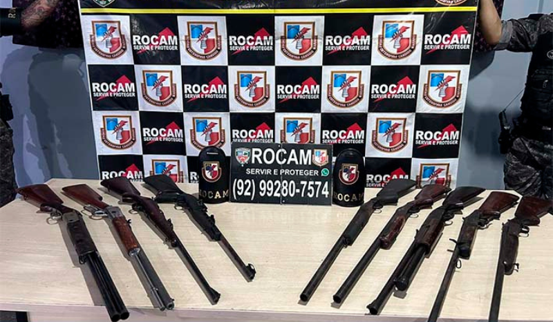 Os PMs encontraram as armas enterradas dentro de uma lona. Ao todo, a equipe da Rocam apreendeu seis espingardas, sendo três de calibre 12, duas de calibre 20, e uma de calibre 16; um rifle de calibre 357; uma carabina de calibre 22 e outra carabina sem calibre identificado.