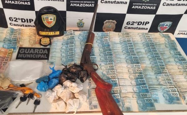 A Polícia Civil do Amazonas (PC-AM), por meio da 62ª Delegacia Interativa de Polícia (DIP) de Canutama (a 619 quilômetros de Manaus), com o apoio da Polícia Militar do Amazonas (PMAM) e Guarda Civil Municipal (GCM), prendeu em flagrante, na quarta-feira (14/08), os irmãos Jaqueline Santos da Silva, 28, e Lucas Santos da Silva, 21, e Marcos Felipe de Oliveira Lima, 30, por tráfico de drogas e associação para o tráfico. As prisões ocorreram no Centro do município.
