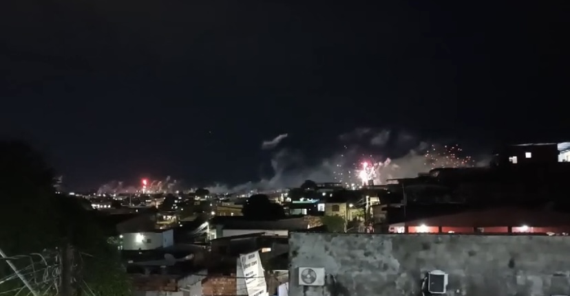 Parece até passagem de Ano Novo.  Vários bairros de Manaus estão com um verdadeiro foguetório na noite deste sábado (10). Nas redes sociais, circula uma nota supostamente de autoria de um grupo criminoso que o motivo da queima de fogos seria para comemorar a atuação da facção criminosa Comando Vermelho (CV) em Manaus.