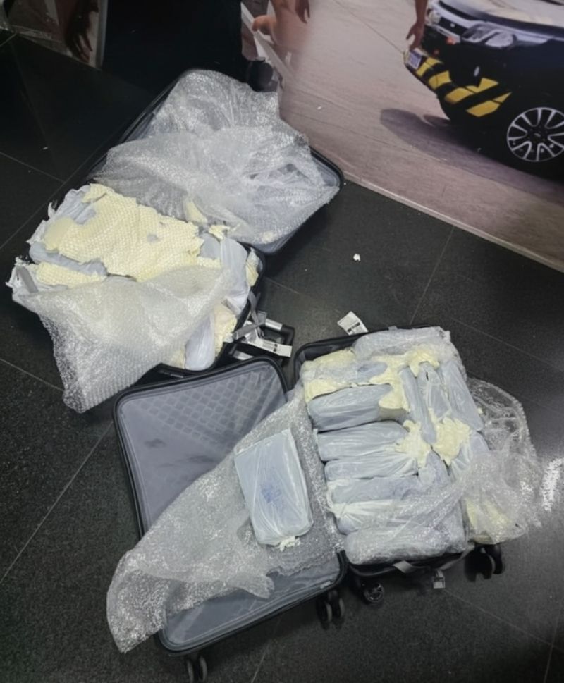 De acordo com a corporação, o suspeito foi abordado durante o processo de check-in. Ele estava acompanhado de um casal e carregava duas malas que continham o entorpecente.