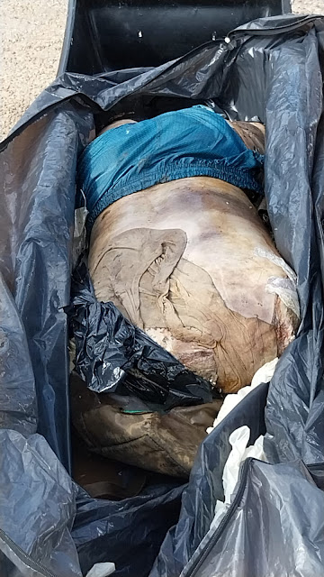 Dentro da mala que estava boiando no rio, havia o tronco de um homem, sem as pernas e braços, já em avançado estado de decomposição.