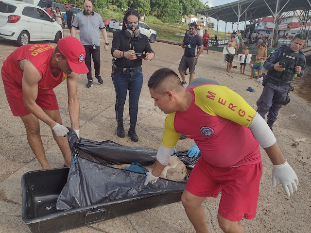 O Pelotão Fluvial do Corpo de Bombeiros Militar do Amazonas foi acionado para fazer a retirada do corpo da água.