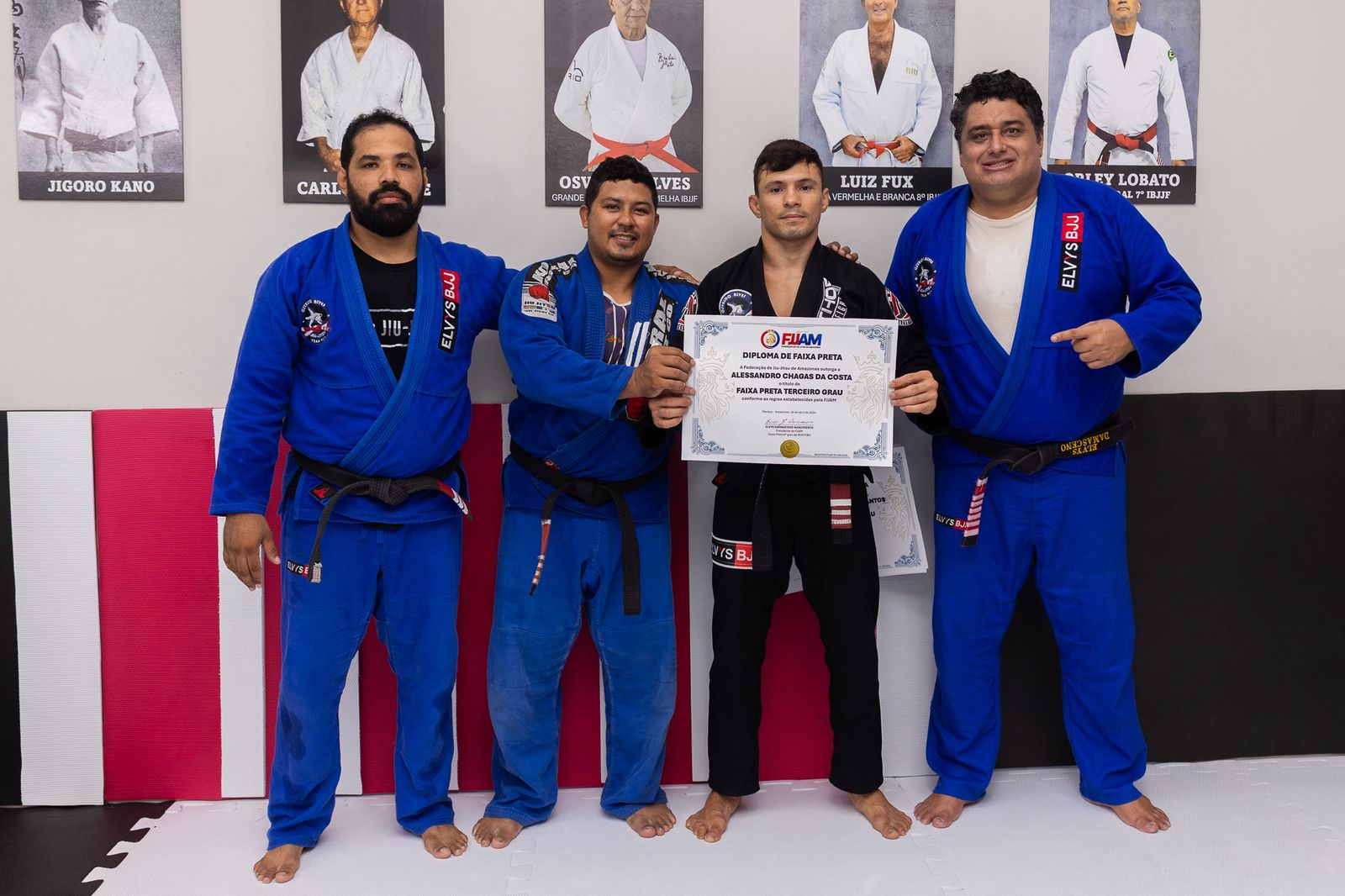 O lutador amazonense Alessandro Costa, destaque do UFC, recebeu seu 3º grau na faixa preta de jiu-jitsu durante cerimônia realizada no CT da equipe Equipe Elvys Damasceno, localizado no bairro Cachoeirinha, em Manaus. A graduação foi concedida pelo mestre Elvys Damasceno.