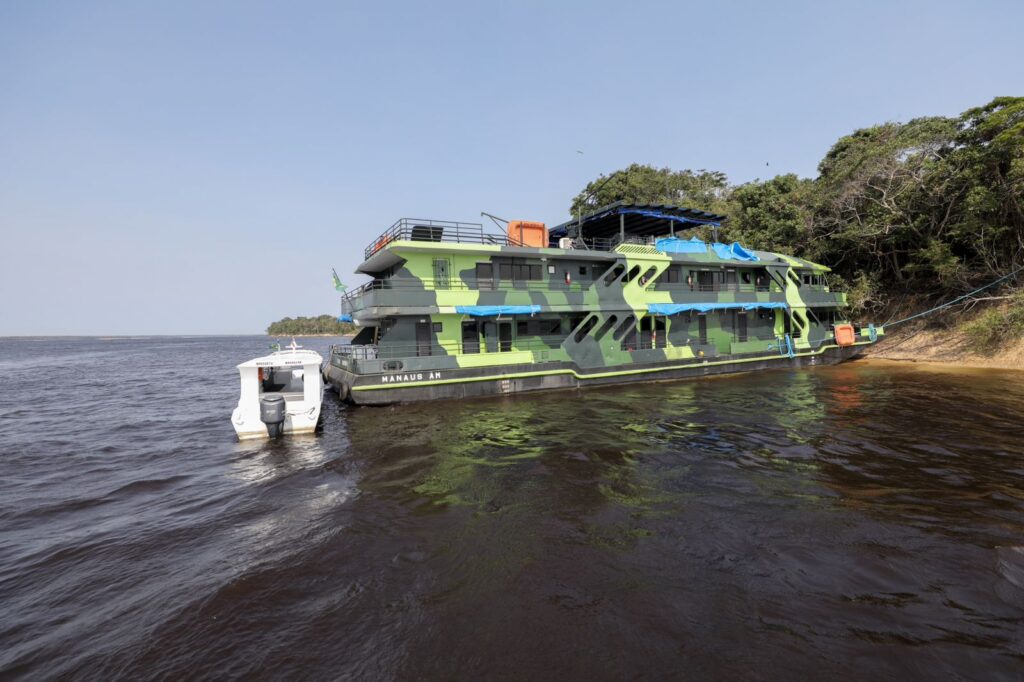 Todas as embarcações que passam onde a base está ancorada são revistadas pelas equipes da PC-AM e PMAM