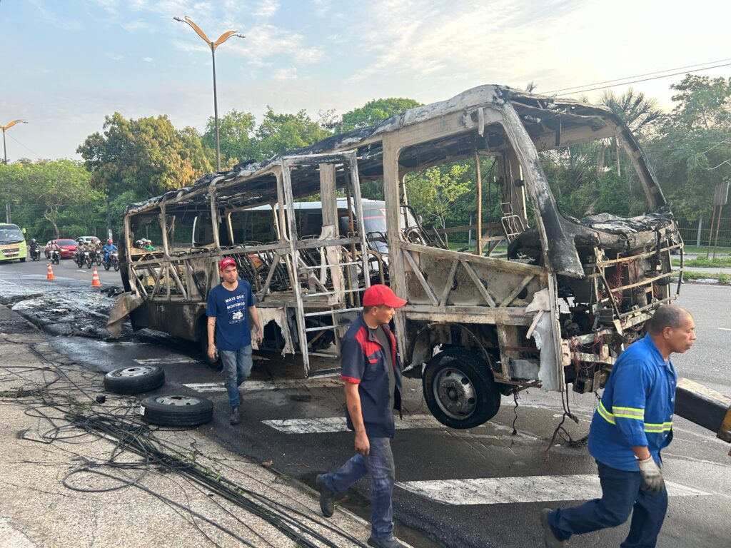Manaus – Um ônibus foi completamente destruído por um incêndio na manhã desta segunda-feira (27), na avenida General Rodrigo Otávio, em frente à Universidade Federal do Amazonas (UFAM), no bairro Japiim, zona Sul de Manaus.