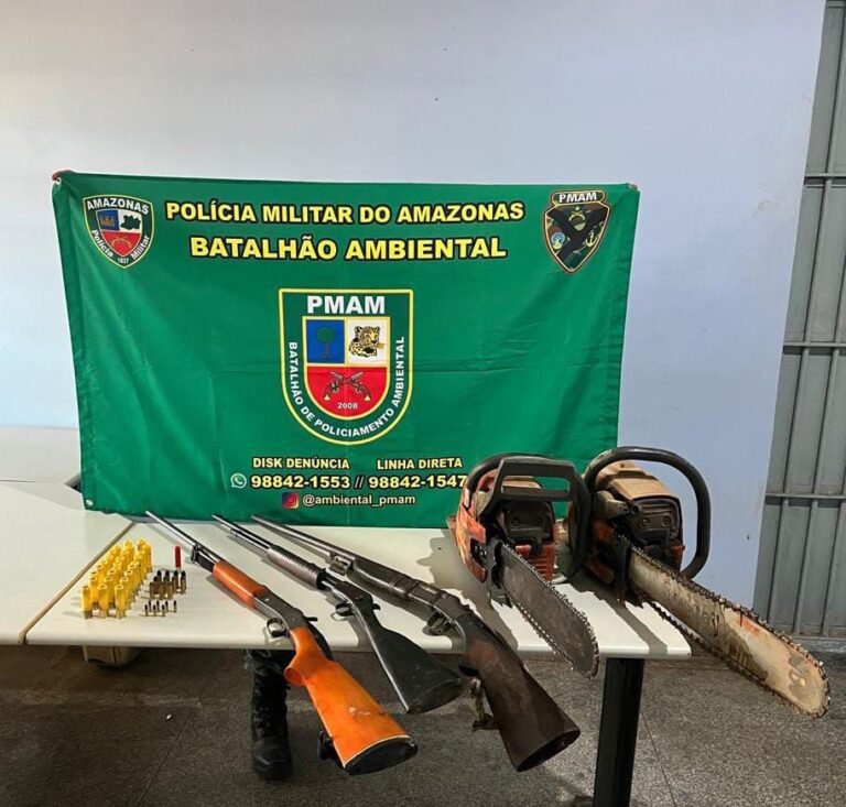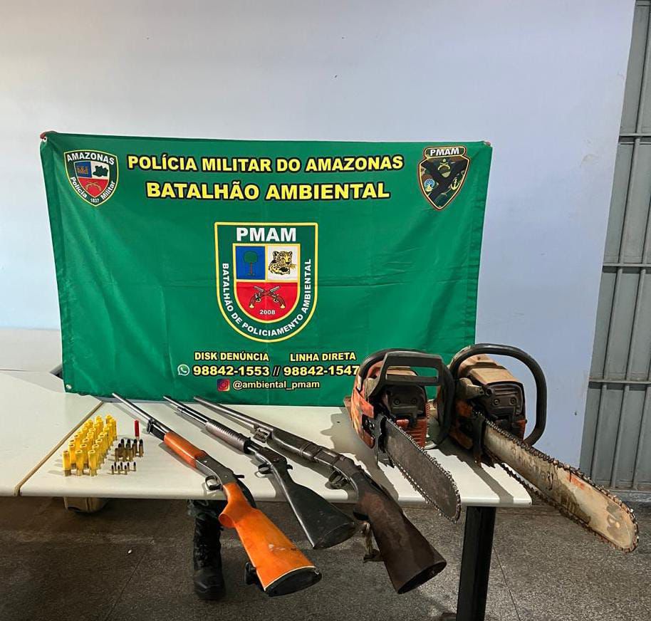 A Polícia Militar (PMAM), por meio do Batalhão de Policiamento Ambiental (BPAmb), apreendeu, na quarta-feira (19/06), em duas diferentes ações, quatro armas de fogo, munições e duas motosserras, no ramal Bela Vista, em Humaitá (a 590 quilômetros de Manaus). As apreensões ocorreram no escopo da operação Tamoitiatá, ação de combate aos crimes ambientais, desencadeada no sul do Amazonas.