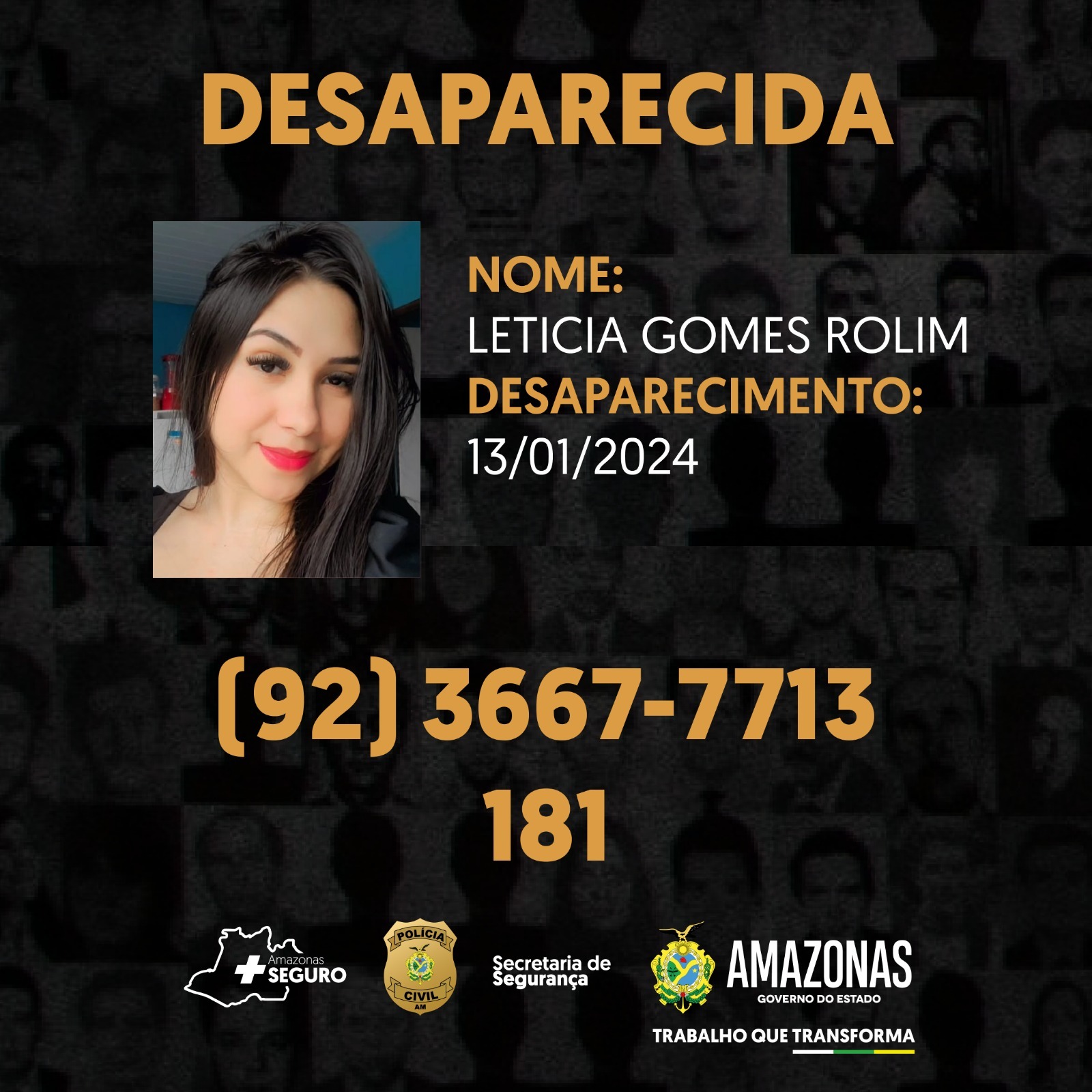 A PC-AM destaca que o apoio da população por meio do compartilhamento das imagens de pessoas desaparecidas, principalmente nas redes sociais, é primordial para localizá-las e trazê-las ao convívio familiar.