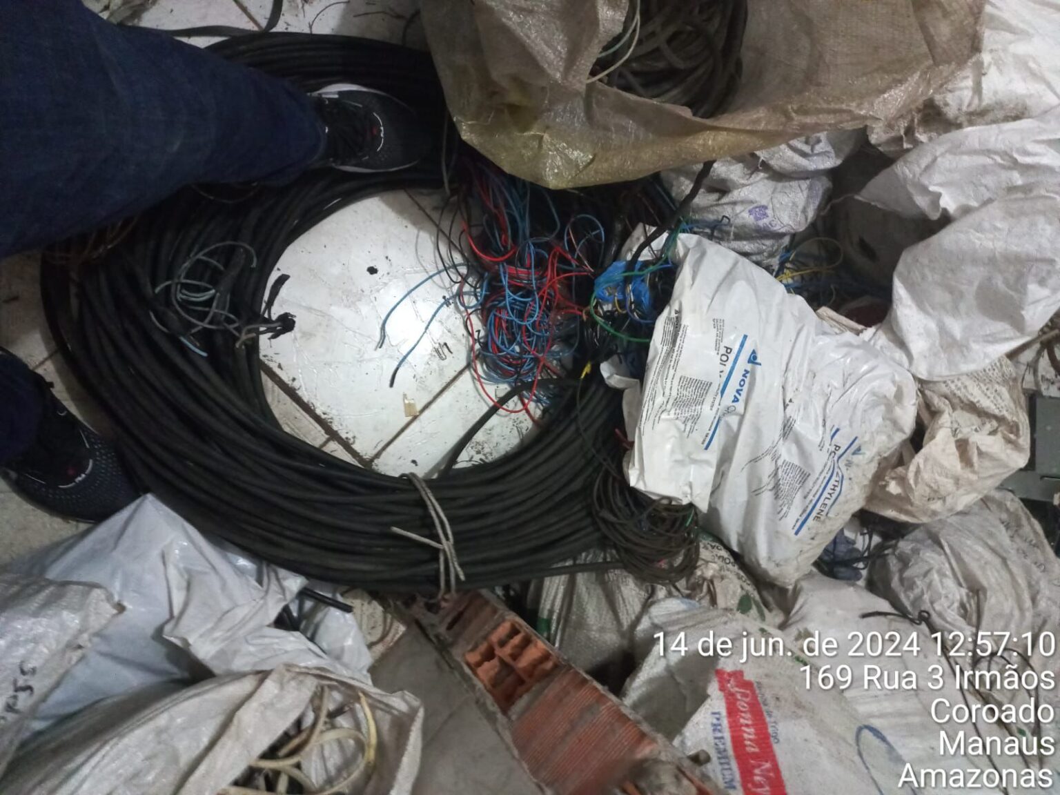 O delegdo relatou que, em continuidade às diligências, a equipe chegou a uma sucataria no bairro Coroado, zona leste, que pertence a Carlos Martins de Souza, responsável por comprar os cabos de energia.