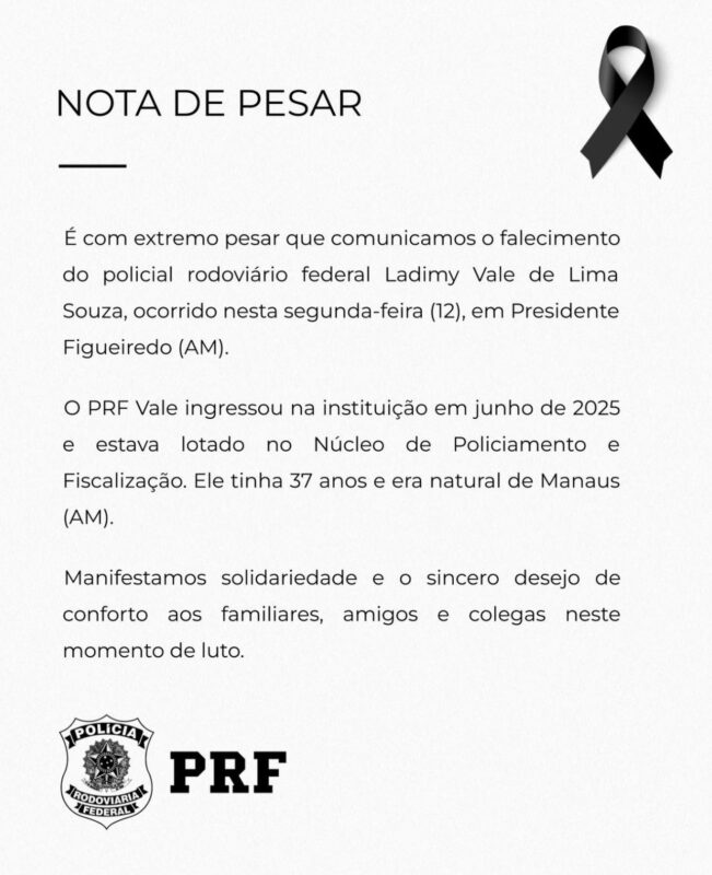 Em nota de pesar divulgada nas redes sociais, a PRF informou que Ladimy ingressou na instituição em junho de 2025, atuava no Núcleo de Policiamento e Fiscalização e era natural de Manaus. A corporação manifestou solidariedade aos familiares, amigos e colegas de trabalho e informou que acompanha o estado de saúde dos agentes feridos.