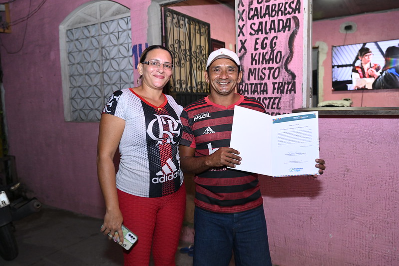 O prefeito de Manaus, David Almeida, acompanhado pelo secretário Jesus Alves, da Secretaria Municipal de Habitação e Assuntos Fundiários (Semhaf), entregou, na noite desta quinta-feira, 25/4, títulos definitivos de terras e registros de imóveis para 20 famílias do bairro Santa Inês, na zona Leste. A entrega da documentação é a conclusão do trabalho feito pela Semhaf, por meio do programa “Manaus Legal”, que busca a regularização de cerca de 20 mil lotes na cidade, que não estão localizados em áreas de risco.