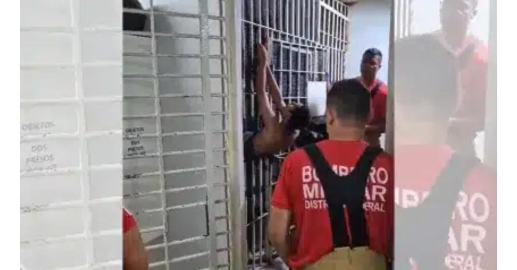Um preso chamou a atenção da equipe de plantão da delegacia do Paranoá, região distante a 20 km da Esplanada dos Ministérios, em Brasília, após ficar entalado em uma abertura da cela.