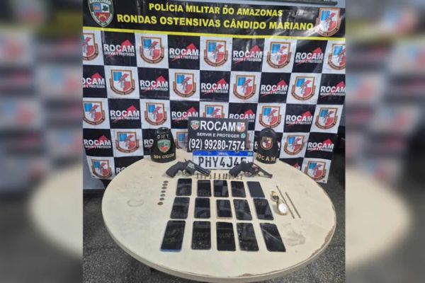 Quatro homens foram presos na manhã desta segunda-feira (04/11), por envolvimento em um roubo a uma autoescola, no bairro São José, zona Leste de Manaus. Os suspeitos foram detidos com armas de fogo, além de 15 aparelhos celulares e outros objetos roubados das vítimas.