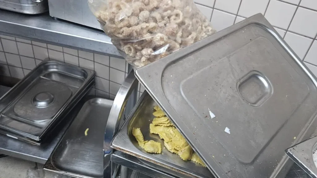 A equipe de fiscalização descartou cerca de 500 kg de alimentos impróprios para consumo.