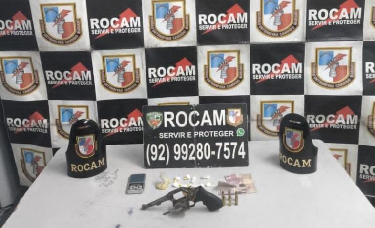 Na noite desta terça-feira (16/09), por volta das 18h, policiais militares do 2º Batalhão de Choque/ROCAM, vinculado ao Comando de Policiamento Especializado, apreenderam uma arma de fogo e drogas na Rua Monte Feliz, bairro Santa Etelvina, zona Norte de Manaus.