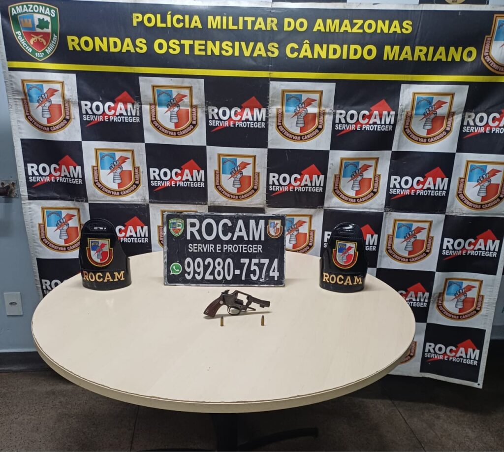 De acordo com a PM, a equipe da ROCAM 03, na viatura 1227, realizava patrulhamento na área quando avistou um indivíduo em atitude suspeita. Ao perceber a aproximação da guarnição, o homem fugiu, abandonando no local um revólver calibre .32, marca INA, de numeração 98562, carregado com duas munições intactas.