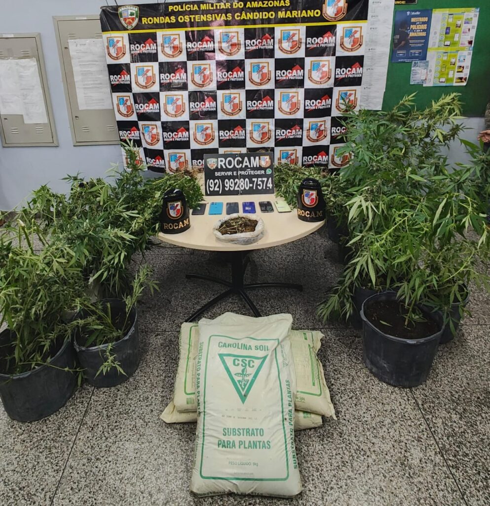 ROCAM prende cinco pessoas e apreende estufa com mais de 60 pés de maconha no Tarumã, em Manaus