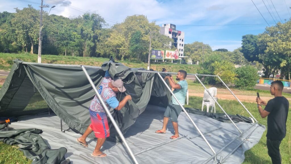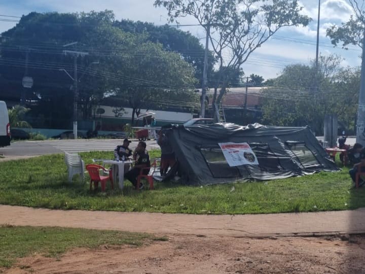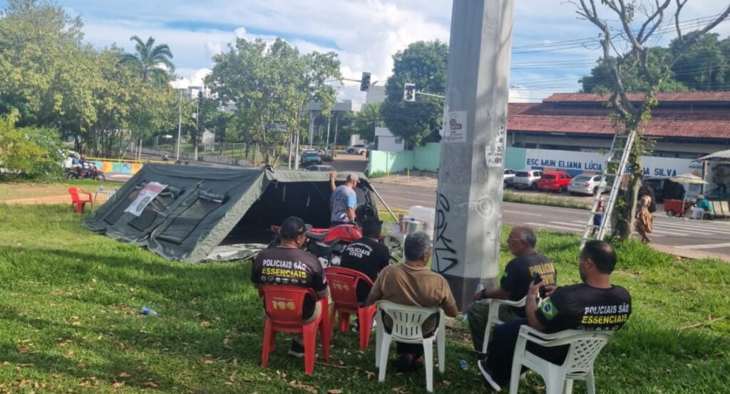 Servidores da Segurança Pública ACAMPARAM na manhã desta quinta-feira, por tempo INDETERMINADO, na frente do Palácio do Governo do Estado do Amazonas, só irão sair de lá quando forem recebidos pelo Governador Wilson Lima.